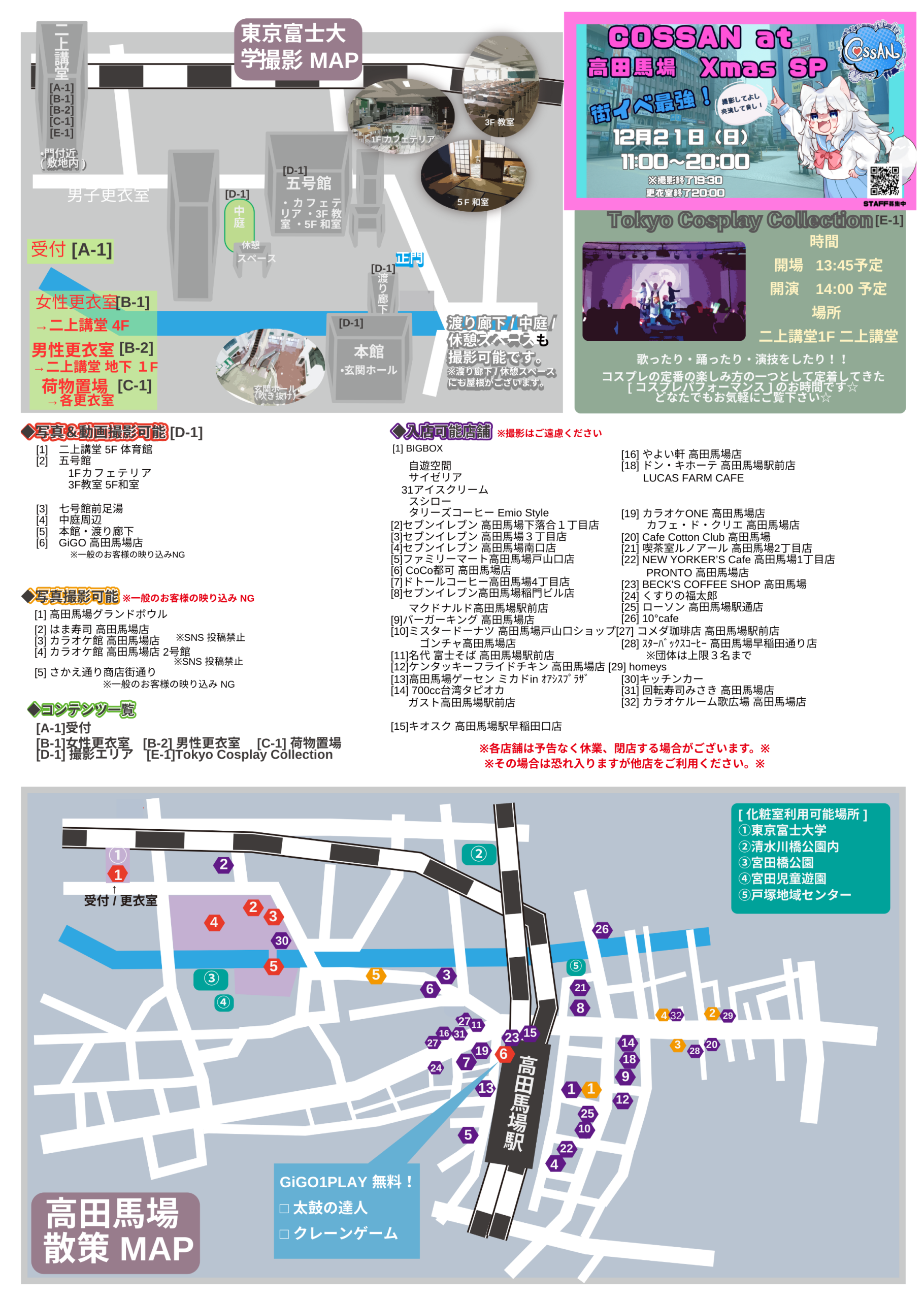 受付・更衣室住所【受付】東京富士大学 二上講堂 1F【11:00〜16:00】 (予定)