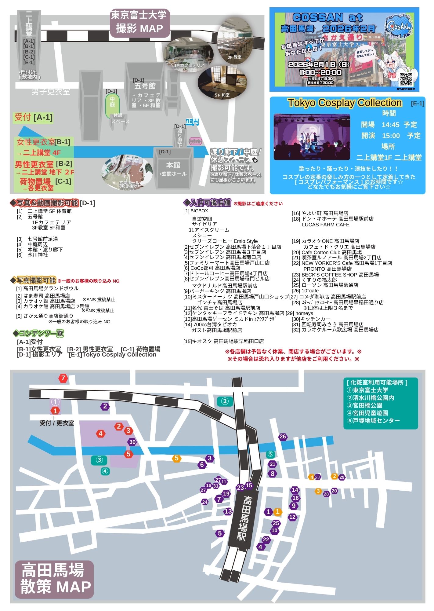 受付・更衣室住所【受付】東京富士大学 二上講堂 1F【11:00〜16:00】 (予定)