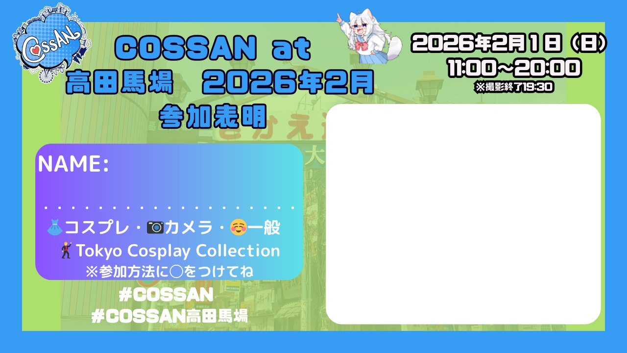#COSSAN や #COSSAN高田馬場 をつけて参加表明をポストしよう!